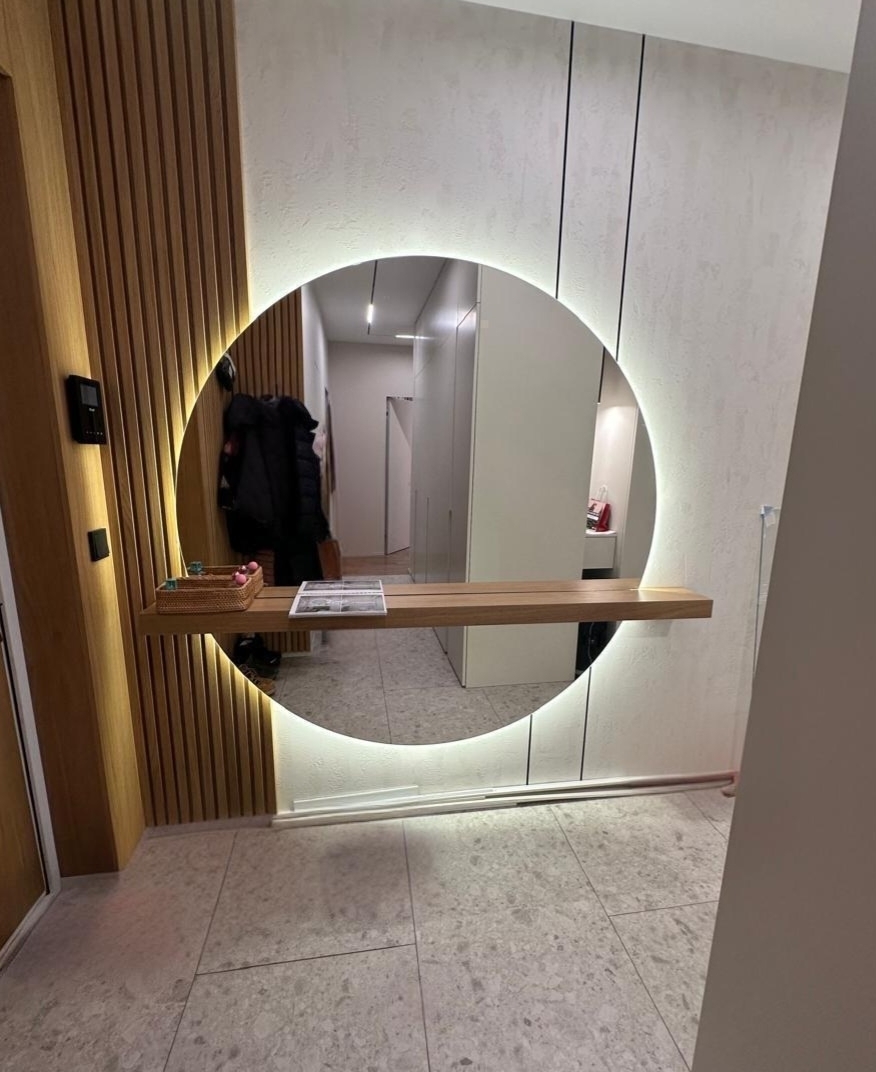 Шкаф купе в прихожую. Мдф эмаль и зеркало серебро.