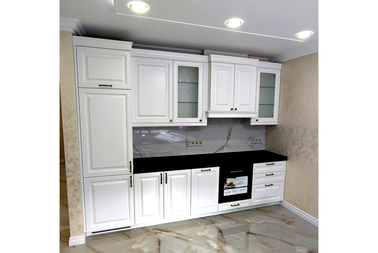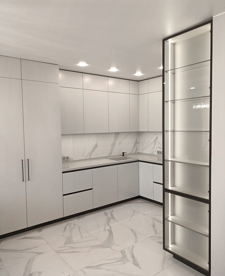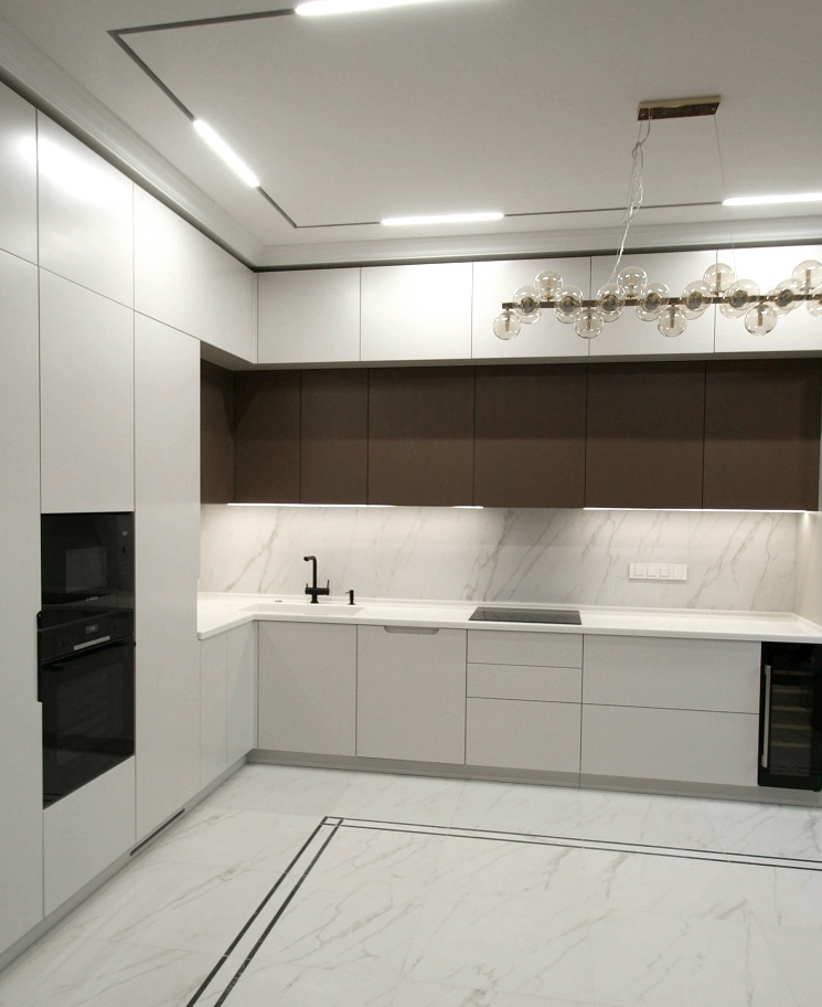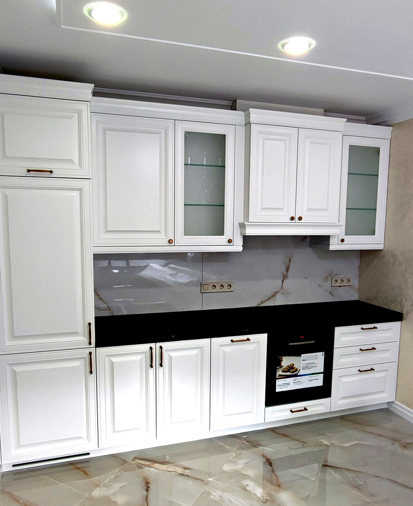 Кухня с фасадами из мдф под эмалью.